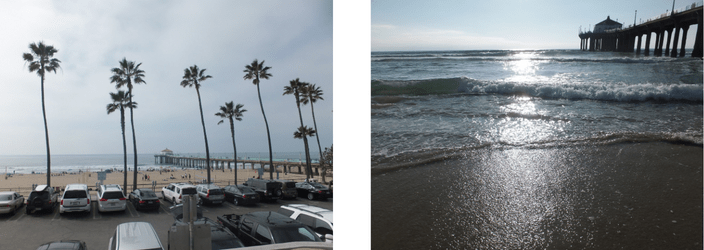 Our final day in LA. After packing our bags and checking out of the hotel, we headed down to the coast. The whole week had been unseasonably warm for February – the temperature reached 30 degrees every day – so it was no surprise when temperatures dropped to the high teens on our last day. Our final stop on our week-long adventure was Manhattan Beach, a beautiful oceanside neighbourhood famous for its exclusive villas and boutique shops. We were able to enjoy these shops as we spent the whole day at the beach, and we also had lunch at one of the many restaurants in the area of Downtown Manhattan Beach. Although it was colder than it had been all week, we still took the opportunity to sit on the beach and enjoy the California sunshine. We even headed down to the shore at one point, and I was able to stand in the Pacific Ocean for the first time.