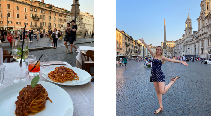 Our hotel was situated near Piazza Navona, one of Rome’s famous squares. Surrounded by restaurants and filled with life, it was a great base for our adventures around the city. On our first night we stopped for dinner at a restaurant we had loved on our previous visit. Once again, the food in Rome did not disappoint. Whilst it wasn’t quite as cheap as Naples, it was still surprisingly affordable. We obviously tried out the classics such as lasagne and bolognese, and my sister now has a deep love for bucatini pasta. Of course, the Italians also know how to do dessert. On our first night we stopped for a drink, and just had to get a tiramisu as well – when in Rome!