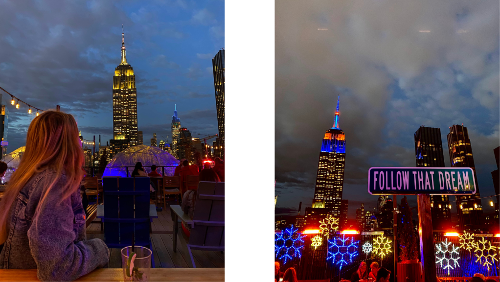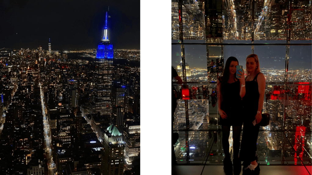 That evening we headed back to Midtown, as we’d booked to visit Summit One Vanderbilt. This is one of New York’s newest observation decks, but it was so much more than that. There are several rooms, and each room has a different type of immersive art installation. The main room had mirrors on the floor, walls and ceiling, reflecting the city lights in different directions. I’ve been to 3 of New York’s 5 observation decks, and this one was definitely my favourite. Tickets were about $48 each, which is pretty good for what’s essentially an observation deck and art exhibition rolled into one! I’d also definitely recommend going up at night, it is busier but the lights of the city are just so beautiful. The Empire State Building, usually lit up in white, was blue that evening to mark the beginning of Tartan Week. I love seeing the Empire State Building lit up in different colours, so it was great to be able to experience this.