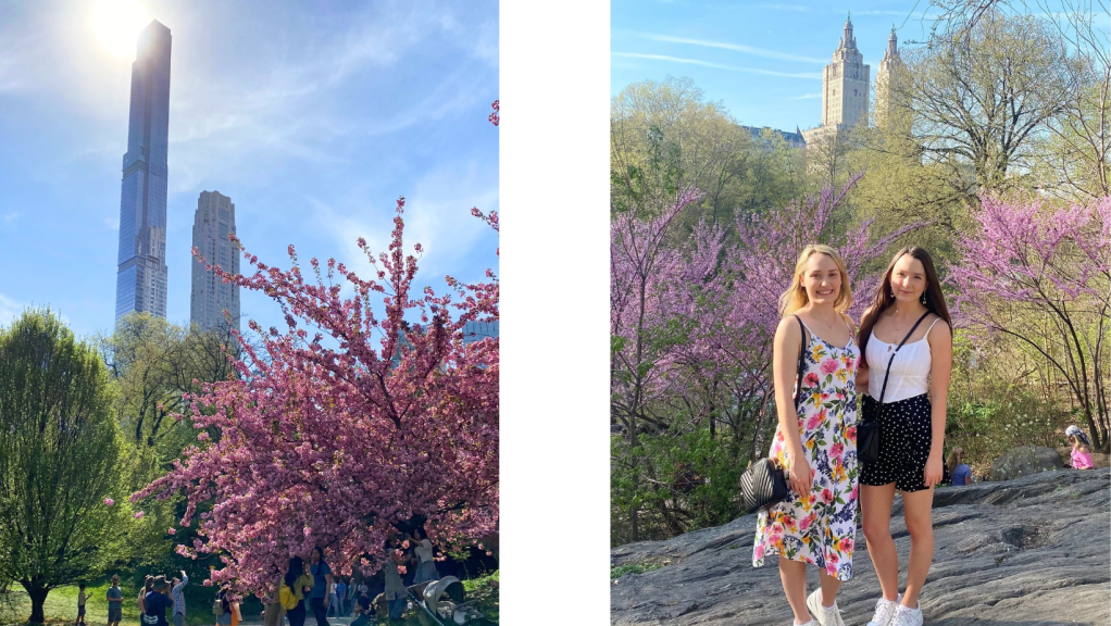 New York is known for having multiple seasons in one day, and we definitely experienced this on our first day in the city. When we landed at JFK, we were greeted with temperatures of nearly 30°C (86°F), which was completely unexpected for mid-April. The first place on our list to visit was my favourite place in the city: Central Park. Our hotel – Park Central Hotel – was located just a few blocks down from the south entrance, which was really convenient. New Yorkers were out in force throughout the park, enjoying the rare warm weather. The atmosphere was amazing, and so relaxing. I just love walking around Central Park, it feels so separate from the rest of the city. After stopping for lunch, we headed up to 72st, where Strawberry Fields is located. New York in the spring is famous for its cherry blossoms, and that’s what we went to see. I’d been looking forward to seeing the cherry blossoms, and it was so worth the wait.